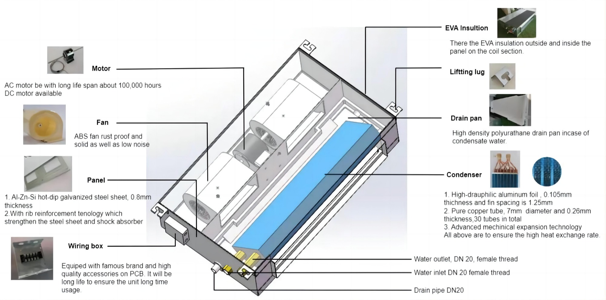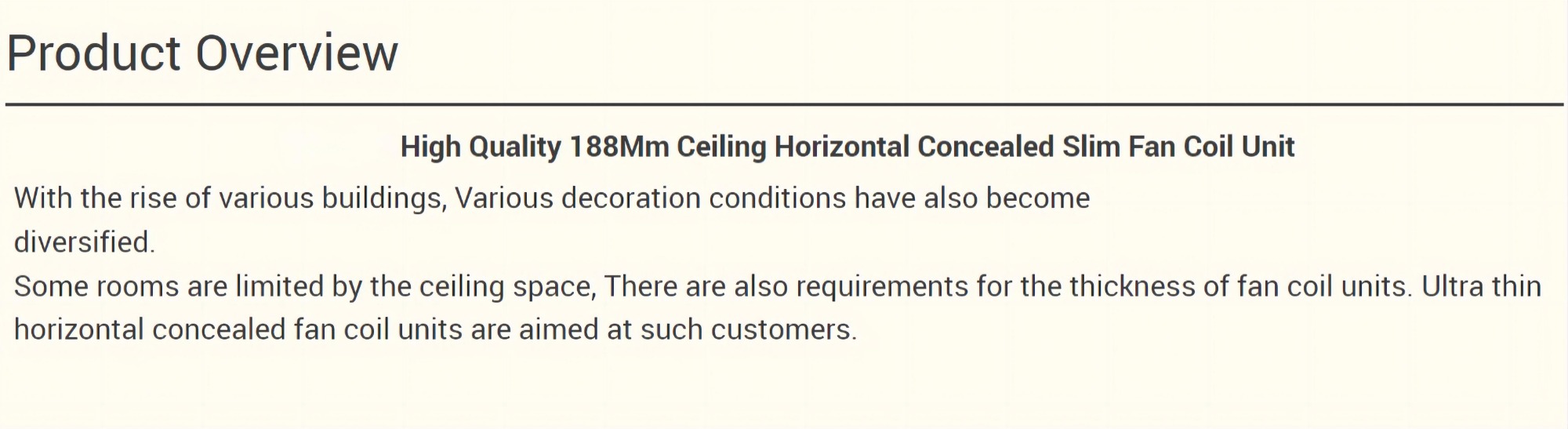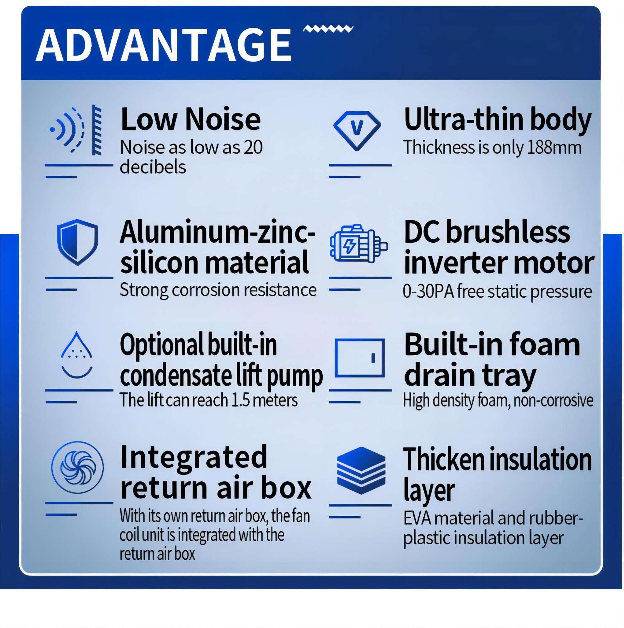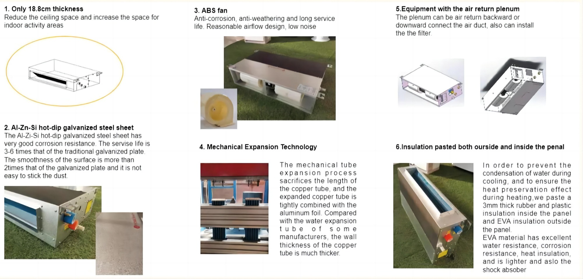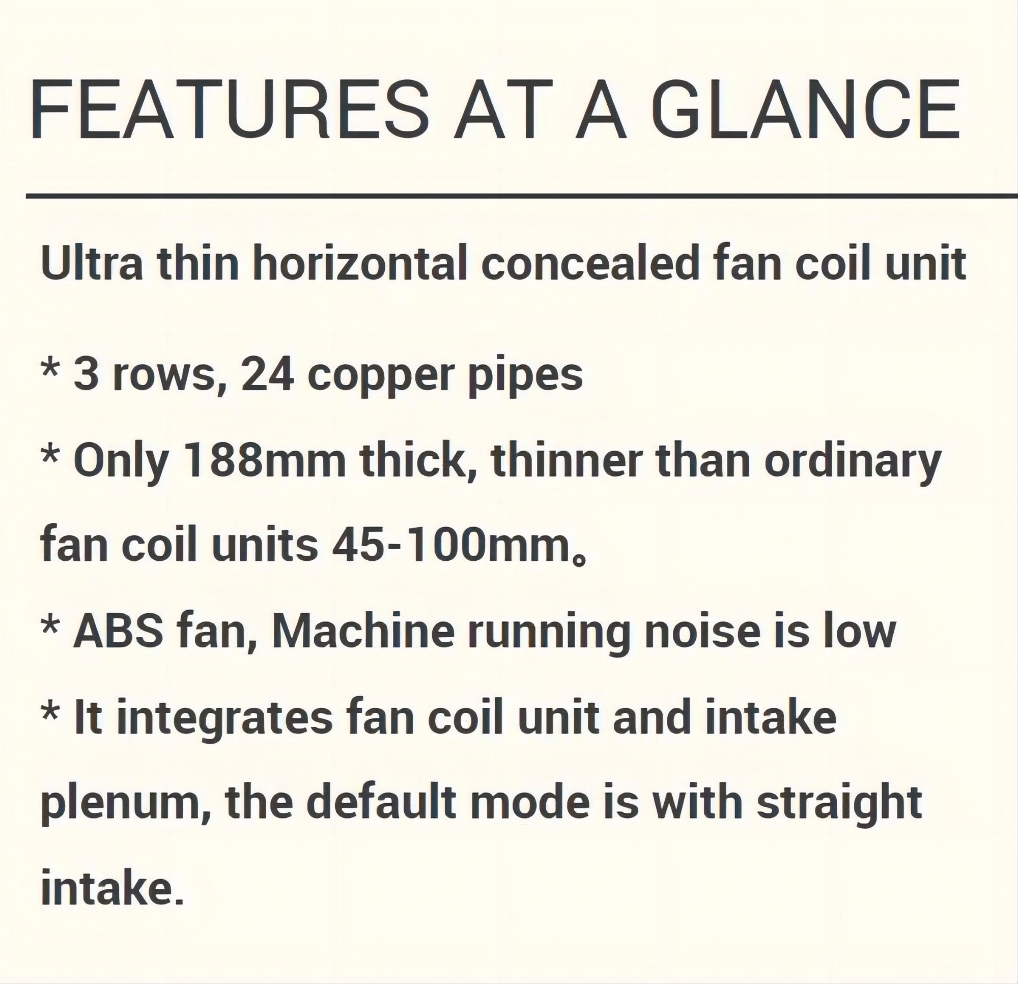 188Mm Slim Fancoil Low Noise Concealed Room Fan Coil Unit
