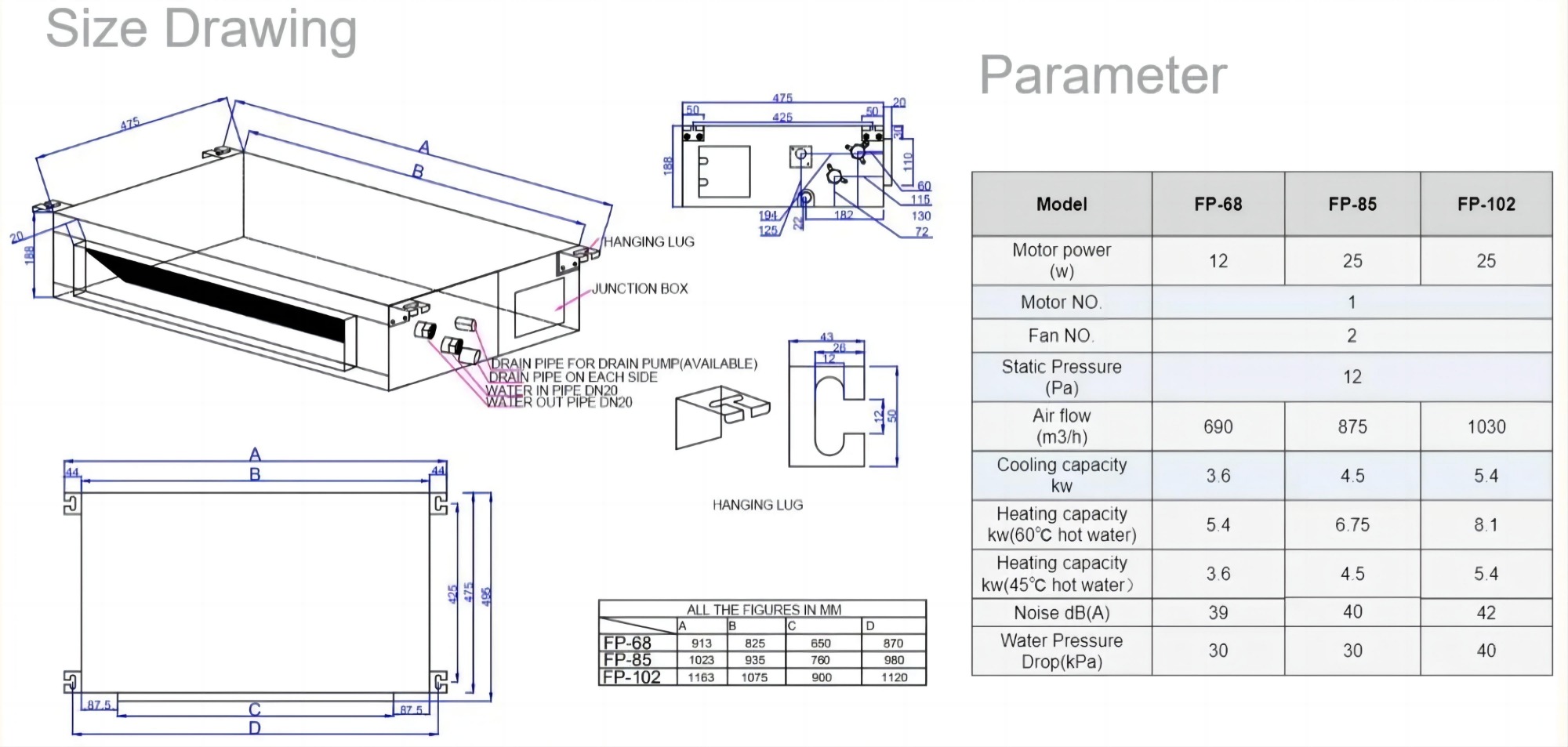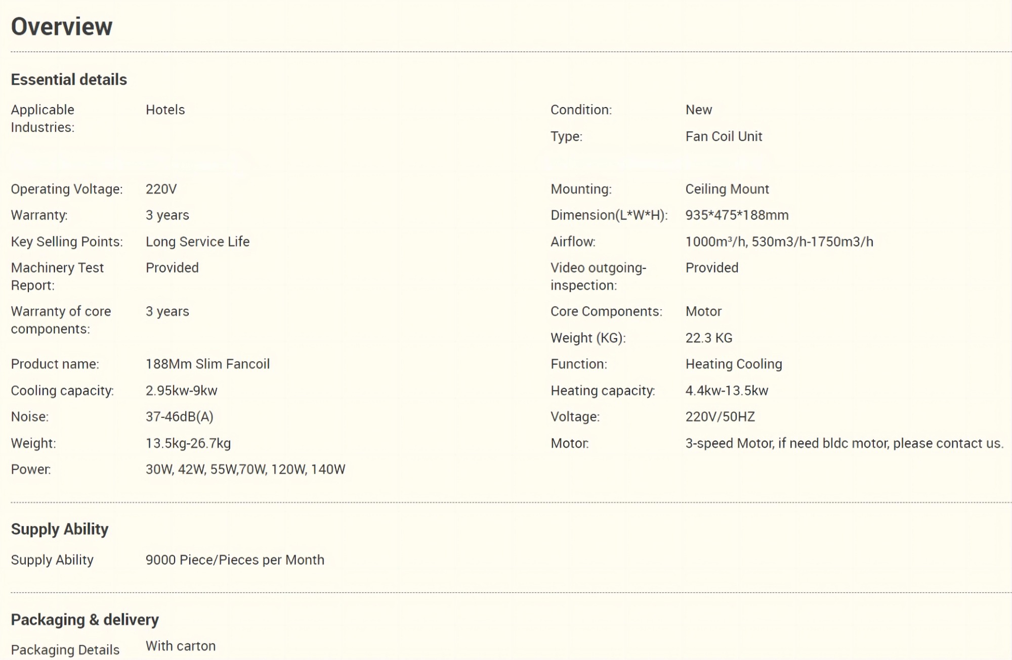 Home > Refrigeration Equipment > Fan Coil Unit > 188Mm Slim Fancoil Low Noise Concealed Room Fan Coil Unit