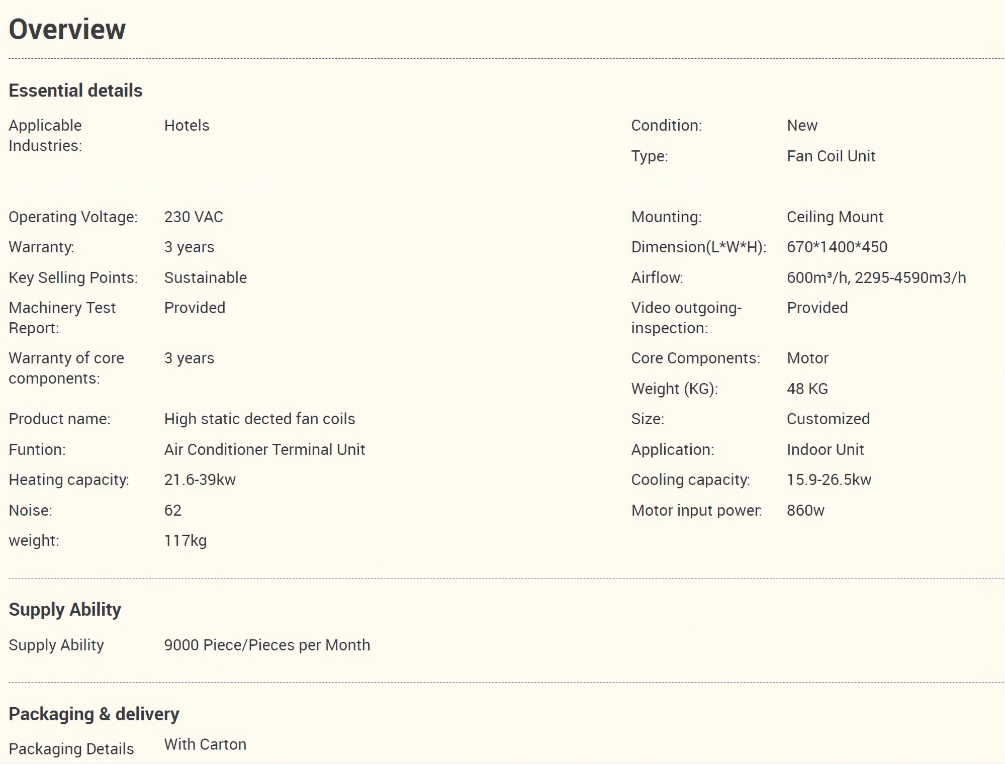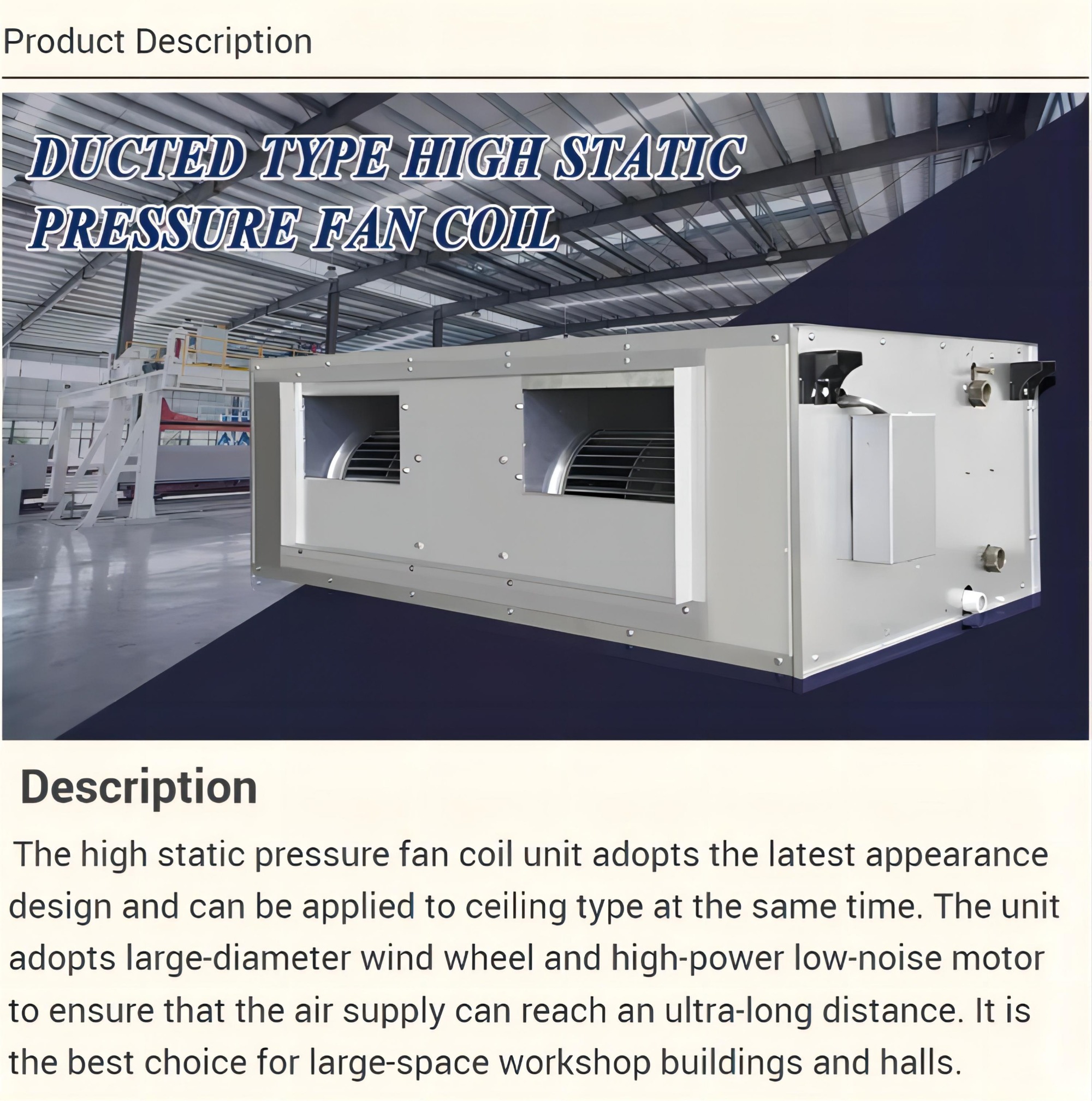 High static pressure ducted fan coil unit cooling capacity 6.4-32.6kW fan coil unit
