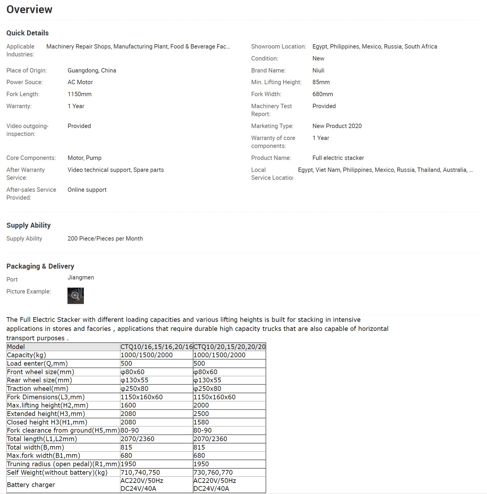 Full electric stacker
