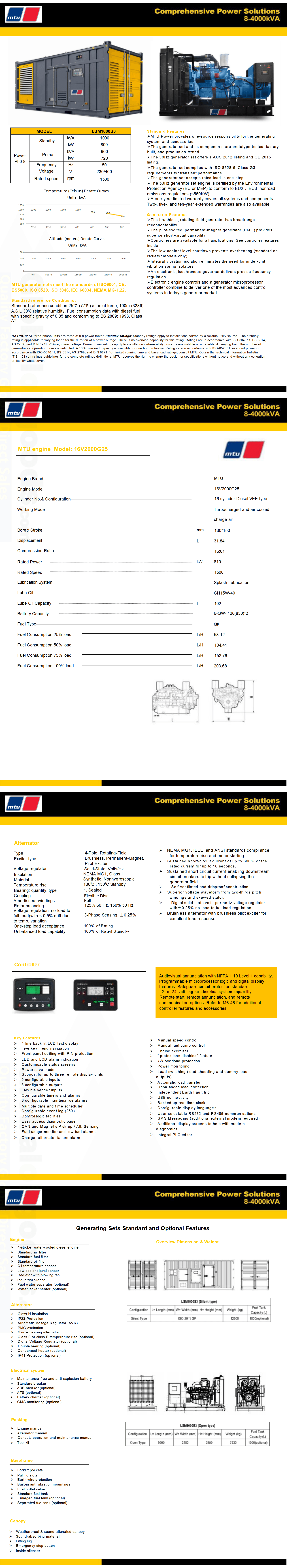 LSM1000S3 MTU POWER-1000KVA Diesel Generator