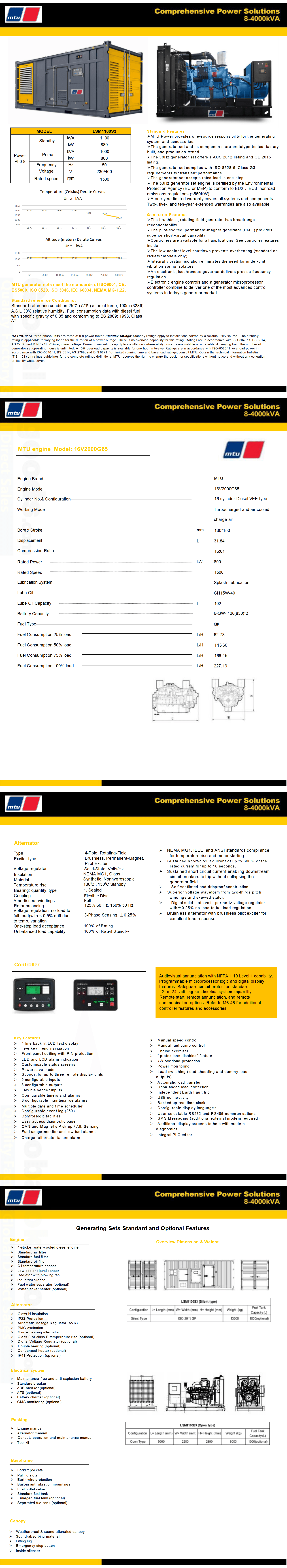 LSM1100S3 MTU POWER-1100KVA Diesel Generator