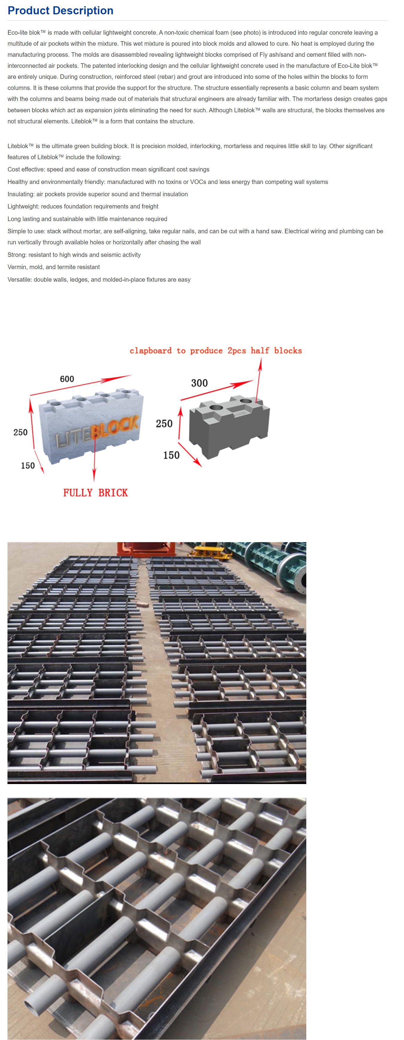 Eco-lite blok™ is made with cellular lightweight concrete. A non-toxic chemical foam (see photo) is introduced into regular concrete leaving a multitude of air pockets within the mixture.