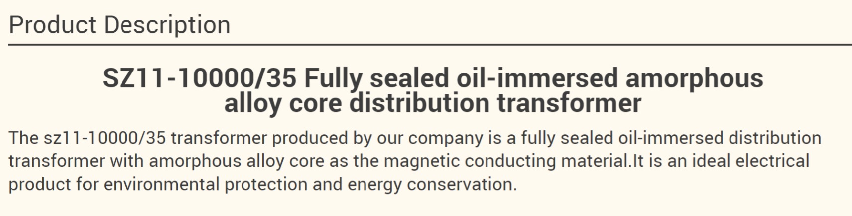 SZ11-10000/35 Fully sealed oil-immersed amorphous alloy core distribution transformer