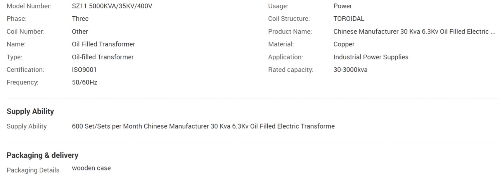 SZ11 5000KVA/35KV/400V